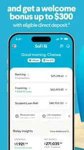 Mobile banking and investing made easy. Send money instantly, deposit checks digitally, pay bills online, track spending with budget tools, save cash in high-yield accounts, trade stocks with no commission (other fees apply). WHY DO 11.7M MEMBERS LOVE SOFI?NEW! SOFI PLUS PREMIUM MEMBERSHIP• America's most rewarding financial membership with $1,000+ in value² each year for your banking and investing needs.• Premium mobile banking features and digital investing tools for just $10/month to enhance your financial management.• Exclusive cash rewards, money-saving perks, and special banking discounts to boost your savings goals.• Enter to win prizes that could fund your biggest financial ambitions through SoFi's member sweepstakes.MOBILE BANKING FEATURES• Mobile checking with no monthly fees, no minimum balance requirements, and no overdraft charges^ for no account-fee free banking.• Get your paycheck up to two days early with direct deposit* and enjoy immediate access to your funds with mobile banking.• Find and use over 55,000+ fee-free ATMs nationwide³ to access your cash without ATM fees or surcharges.• Send money to friends, pay bills online, and make transfers between accounts without extra charges or waiting periods.INVESTING TOOLS• Trade stocks and ETFs with no commission through our easy-to-use online investing platform with SoFi Securities (other fees apply).• Start investing in fractional shares with just $5 to build a diversified stock portfolio, regardless of your budget, with SoFi Securities (restrictions apply).• Access exclusive IPO stock investments before public trading through SoFi's investment platform advantages.• Choose automated investing options tailored to your financial goals with digital portfolio management from SoFi Wealth.HIGH-YIELD SAVINGS• Earn a highly competitive APY¹ with direct deposit to maximize your savings account growth.• Create custom Savings Vaults for your financial goals to organize funds for emergencies or major purchases.• Transfer money instantly between checking and savings accounts§ with no transfer fees or waiting periods.• Track savings progress with digital tools and watch your money grow faster than with traditional banks.PERSONAL LOANS & CREDIT• Apply for competitive loan rates for debt consolidation, home improvements, or other major purchases.• Monitor your credit score with regular updates and credit tracking to stay informed about your financial health.• Explore student loan refinancing options to potentially lower your monthly loan payments and save money.BUDGET TRACKER• Track spending across all your linked accounts with automatic budget categorization and spending insights.• Get real-time spending alerts for unusual activity to help protect your accounts and maintain your budget.• Set up bill payment reminders to avoid late fees and keep your budget on track with our money management tools.SECURITY FEATURES• Bank-level digital encryption protects your personal and financial information when banking online.• Receive instant fraud alerts for suspicious account activity to protect your money and personal information.• Bank with confidence knowing you can access additional FDIC insurance coverage up to $3 million⁶.SPECIALIST SUPPORT• Get help from our dedicated financial team 7 days a week for all your banking and investing questions.• Connect through secure in-app chat for immediate assistance with your accounts, loans, and investments.• Call us directly at (855) 456-SOFI (7634) to speak with our knowledgeable customer service specialists.Download SoFi today for better mobile banking, smarter investing, and powerful budget tracking! Join millions of members who send money, pay bills, deposit checks, save cash, and trade stocks - all in one comprehensive financial app.